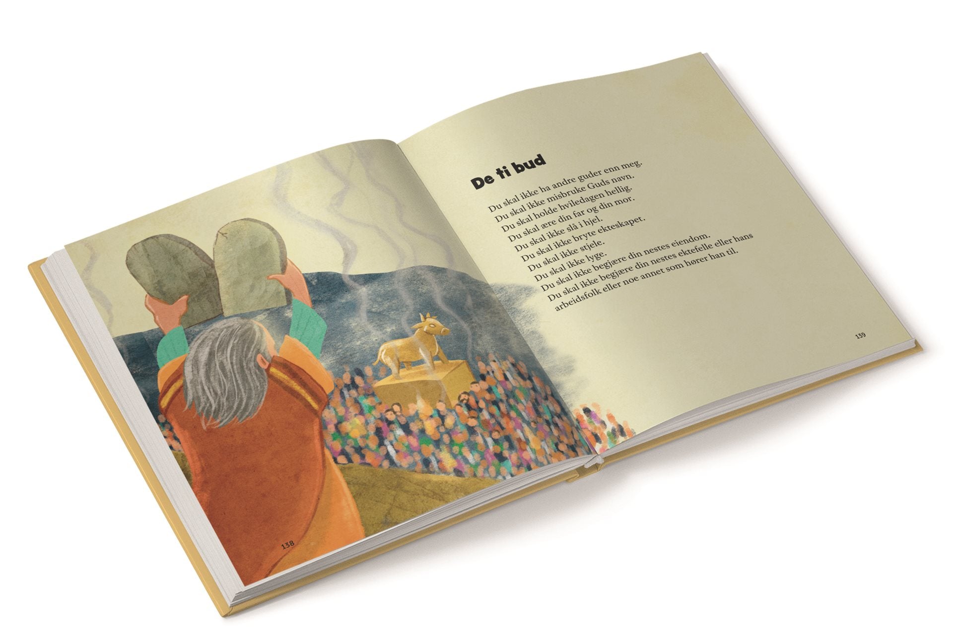 Den kritikerroste Bibel for nybegynnere har fått nytt omslag og passer nå godt som gave til 4-åringer. Den har også fått magebind hvor man kan skrive på navnet til barnet. Magebindet kan fjernes og boka blir en fin barnebibel uten føringer på alder. Under magebindet og i ryggen er tittelen Bibelhistorier.